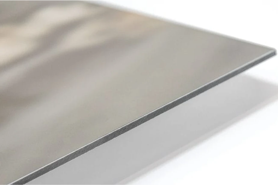 0.20mm of aluminium with a black PVC centre (overall thickness 3mm). The perfect option when looking for a rigid archival printed panel that has great stiffness. This option is considerably lighter than solid aluminium sheets making it a more popular choice, especially for extra-large panels. Max size 1500mm x 3000mm.
